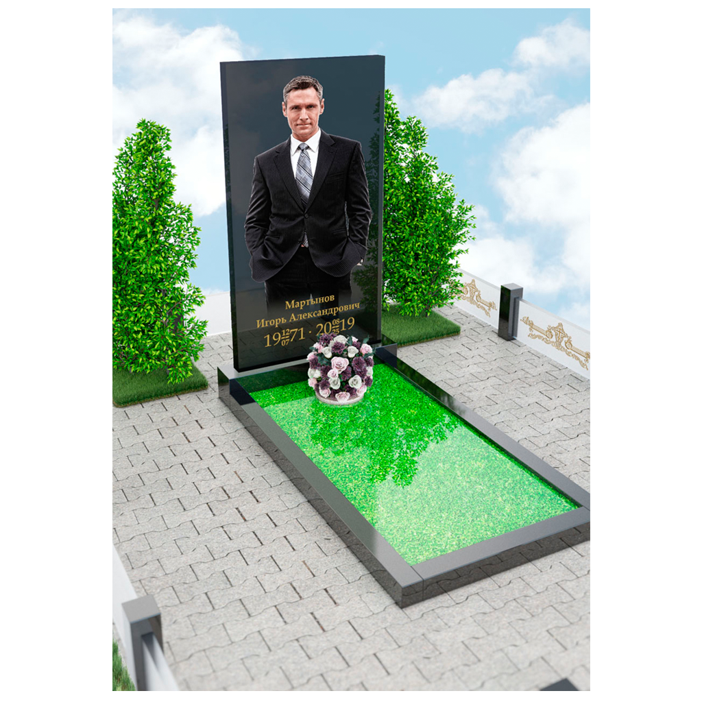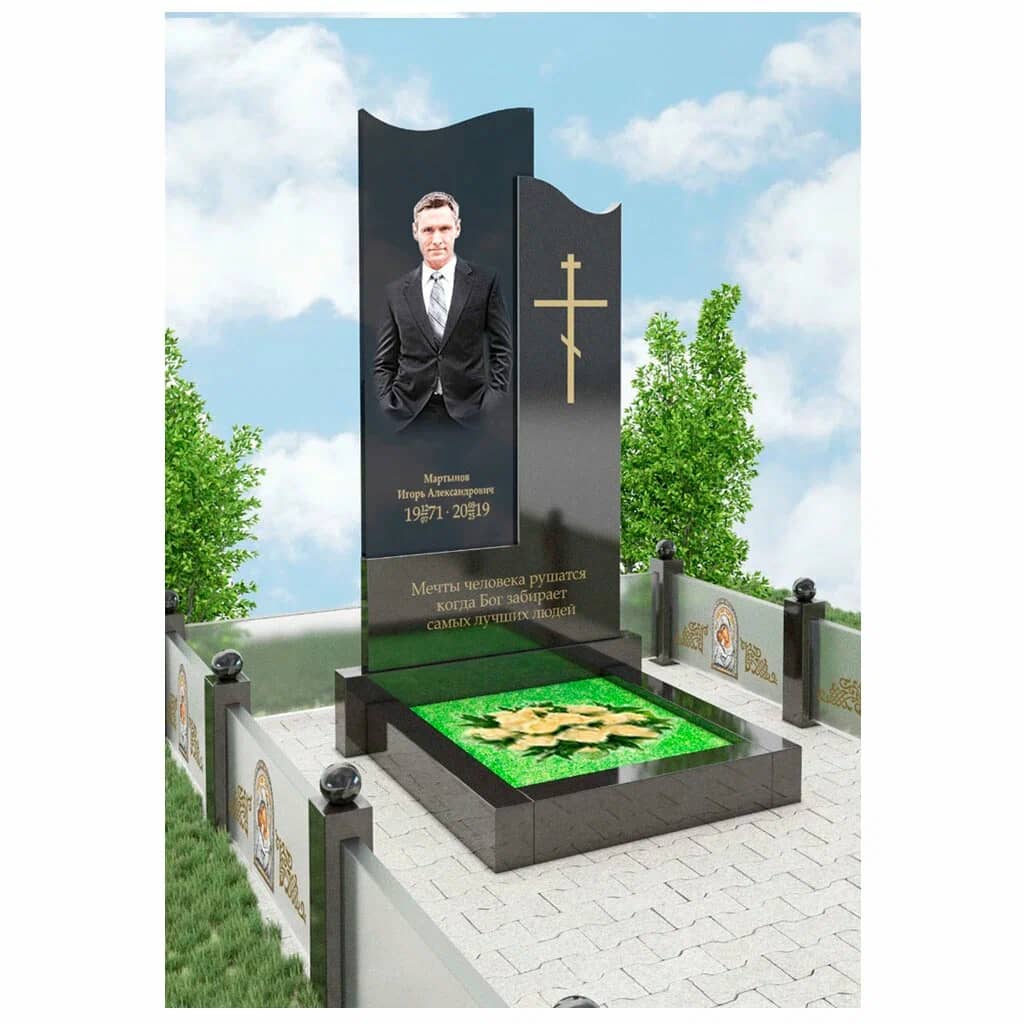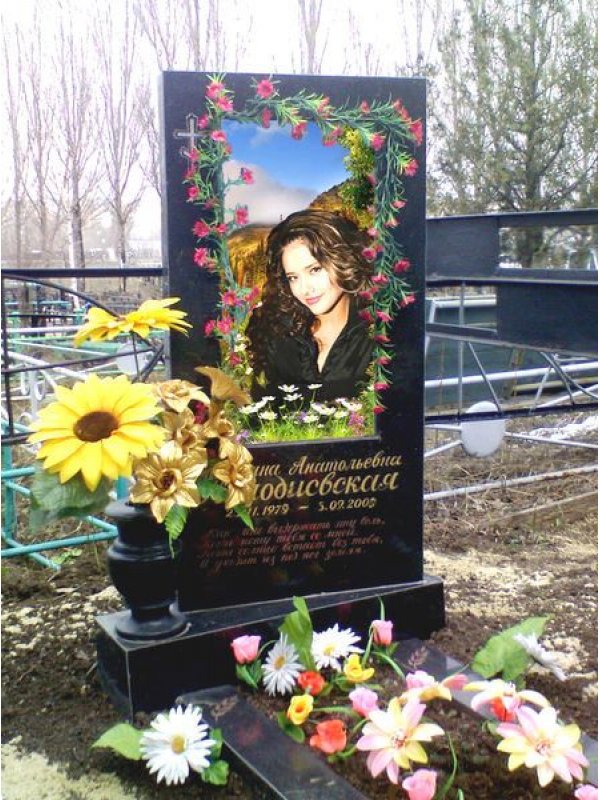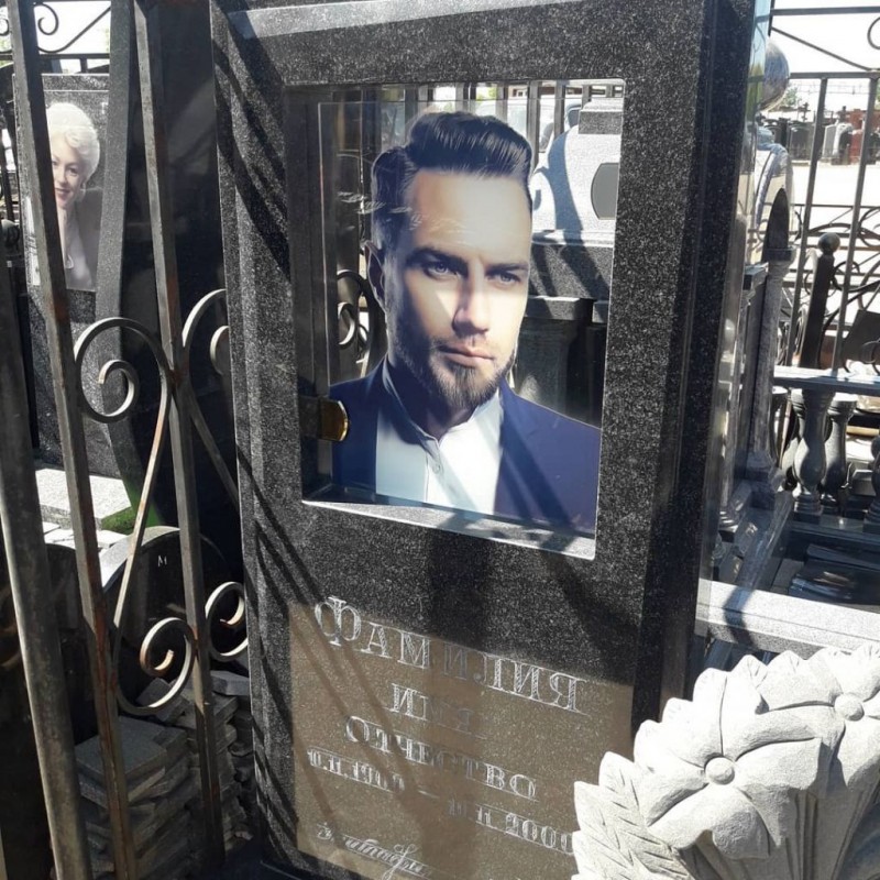 Самый реалистичный памятник на кладбище из гранита и закаленного стекла с печатью керамическими красками и гарантией 40 лет.