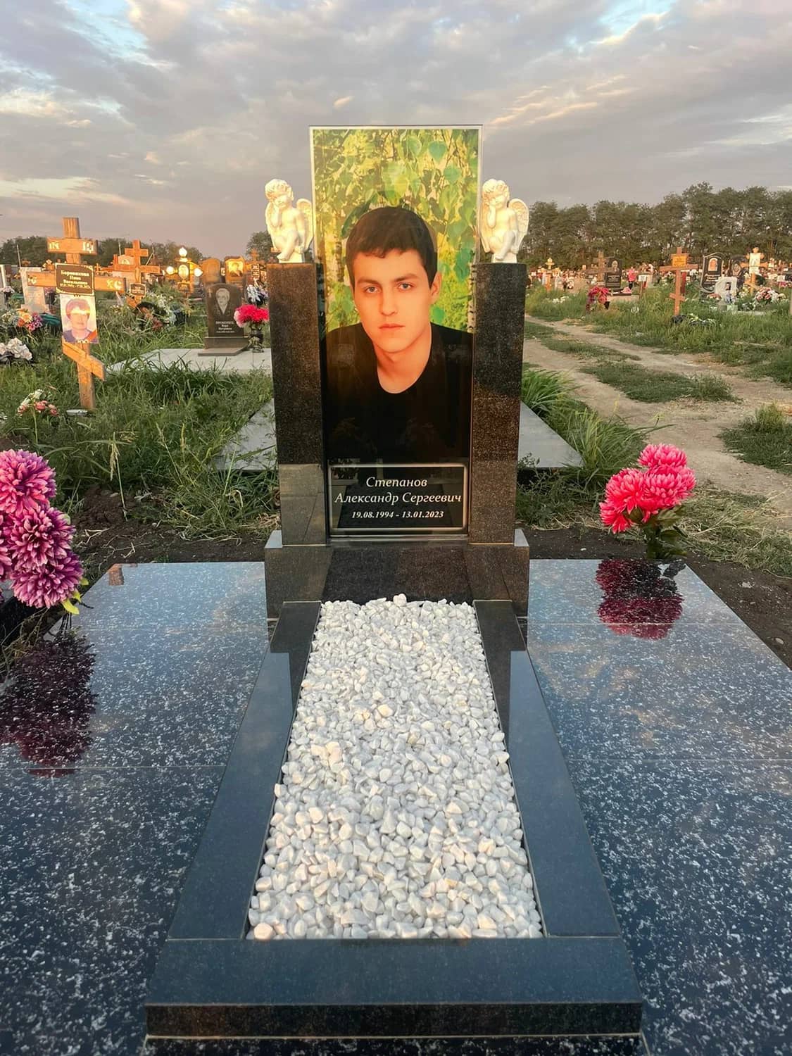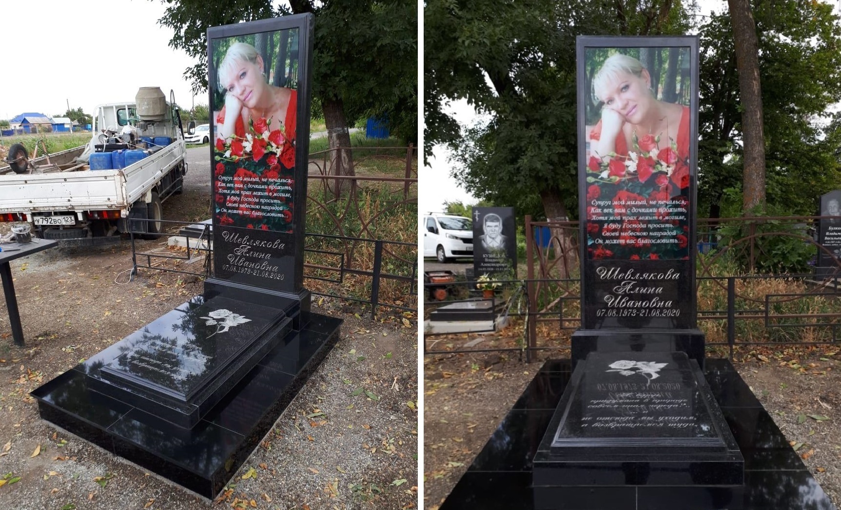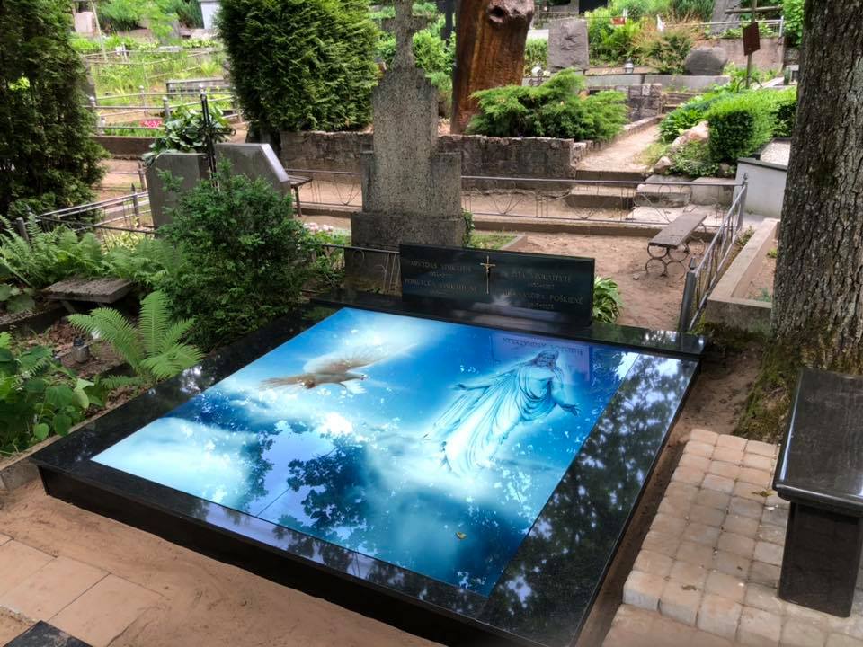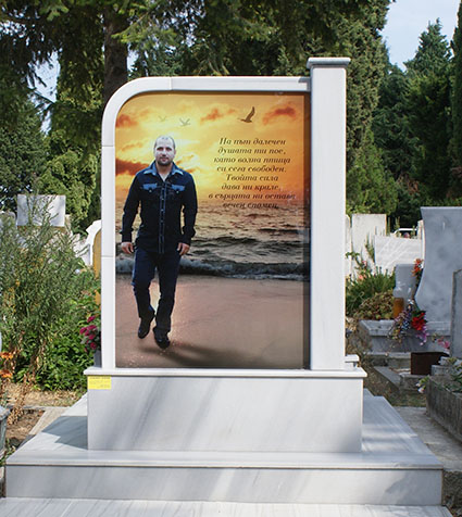 Самый реалистичный памятник на кладбище из гранита и закаленного стекла с печатью керамическими красками и гарантией 40 лет.