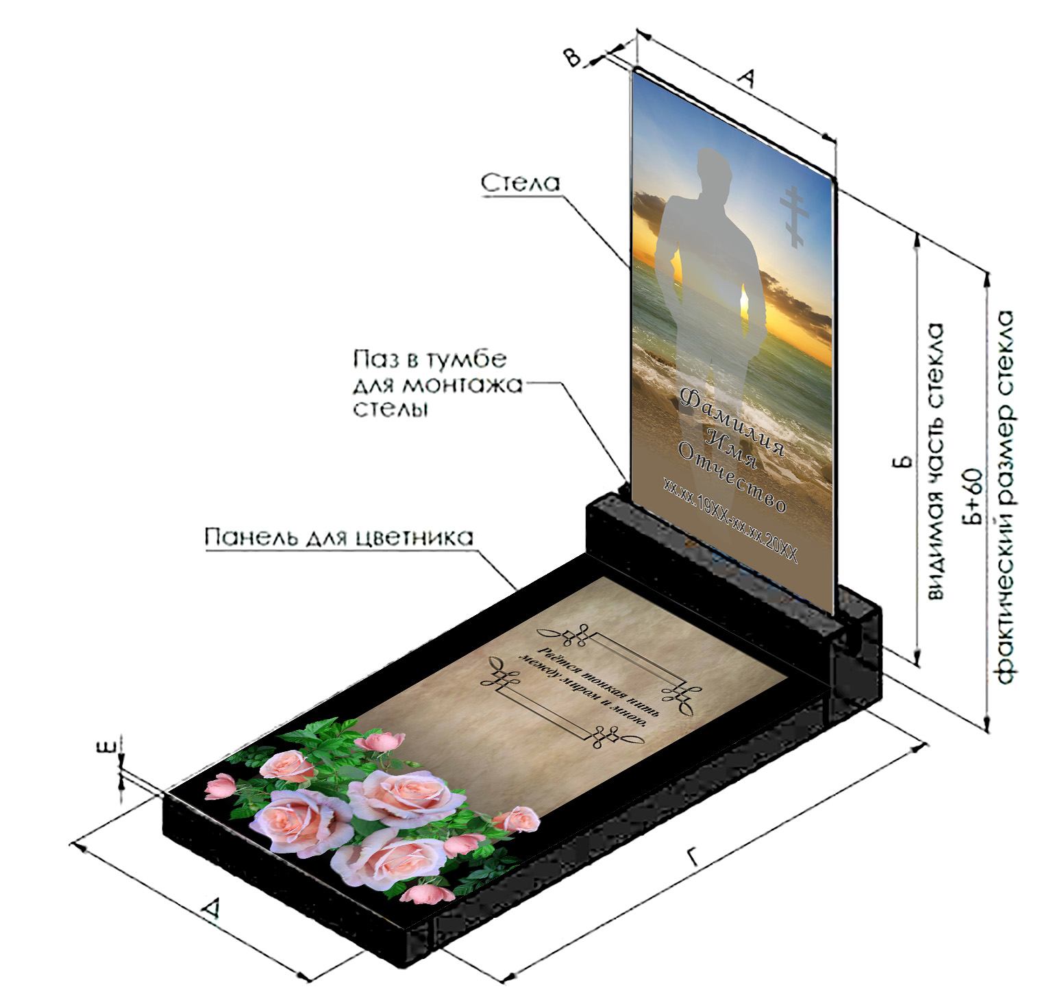 Стеклянные панели для памятников, надгробий, ограждений от производителя. Изготовим в нужный размер портрет, надгробие, панель для стелы и цветника из безопасного ударопрочного стекла. Стеклянные памятники — это современное и изысканное решение, которое сочетает в себе эстетическую легкость и долговечность. Наши стеклянные памятники изготавливаются с использованием керамических красок, что обеспечивает яркость и стойкость изображения на протяжении долгих лет. Каждый памятник проходит тщательную проверку качества и имеет гарантию 40 лет, что подтверждает нашу веру в продукт и заботу о вашем спокойствии. Стеклянные памятники не требуют обязательного регулярного ухода. Они не капризнее гранитных памятников и поэтому мыть их можно не чаще 2х раз в год. Алгоритм мытья стандартный: обилие воды, мягкая ветошь и средство для мытья стекол.